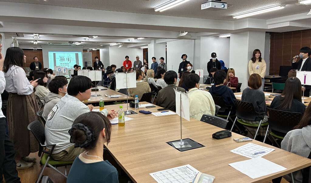学生たちは初めて顔を合わせ、自己紹介からスタートしました。途中でアイスブレイクを取り入れながら、少しずつ緊張をほぐしていきます。